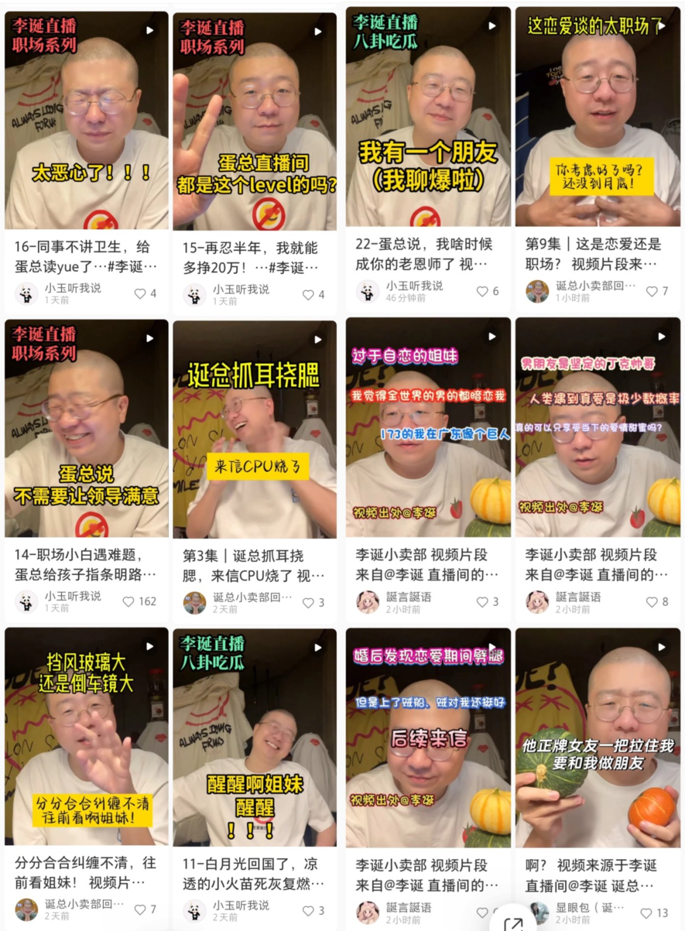 又或许是李诞足够聪明,清楚女性是他直播间的靶向受众。他的知识储备和人生阅历足够令他知道 「在什么场合说什么话」。无论什么原因,李诞成为小红书直播带货的断崖式第一人。同时,他的直播切片也间接养活了 1.2 万个传播者。
