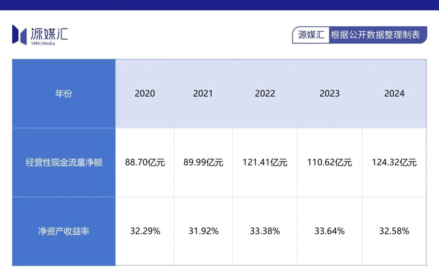 强大的造血能力,更让迈瑞医疗显得底气十足:2024 年经营性现金流净额达 124 亿元;近 5 年净资产收益率 (ROE) 稳定在 30% 以上,与茅台持平,展现出顶级企业的盈利能力与现金流创造能力。