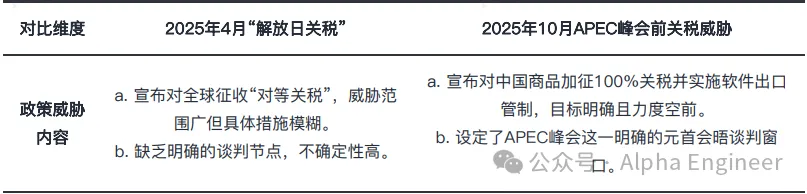 2025 年以来,市场经历了两次由特朗普政府关税威胁主导的典型“TACO 交易” 事件,分别是 4 月的“ 解放日关税” 与 10 月 APEC 峰会前的关税威胁。