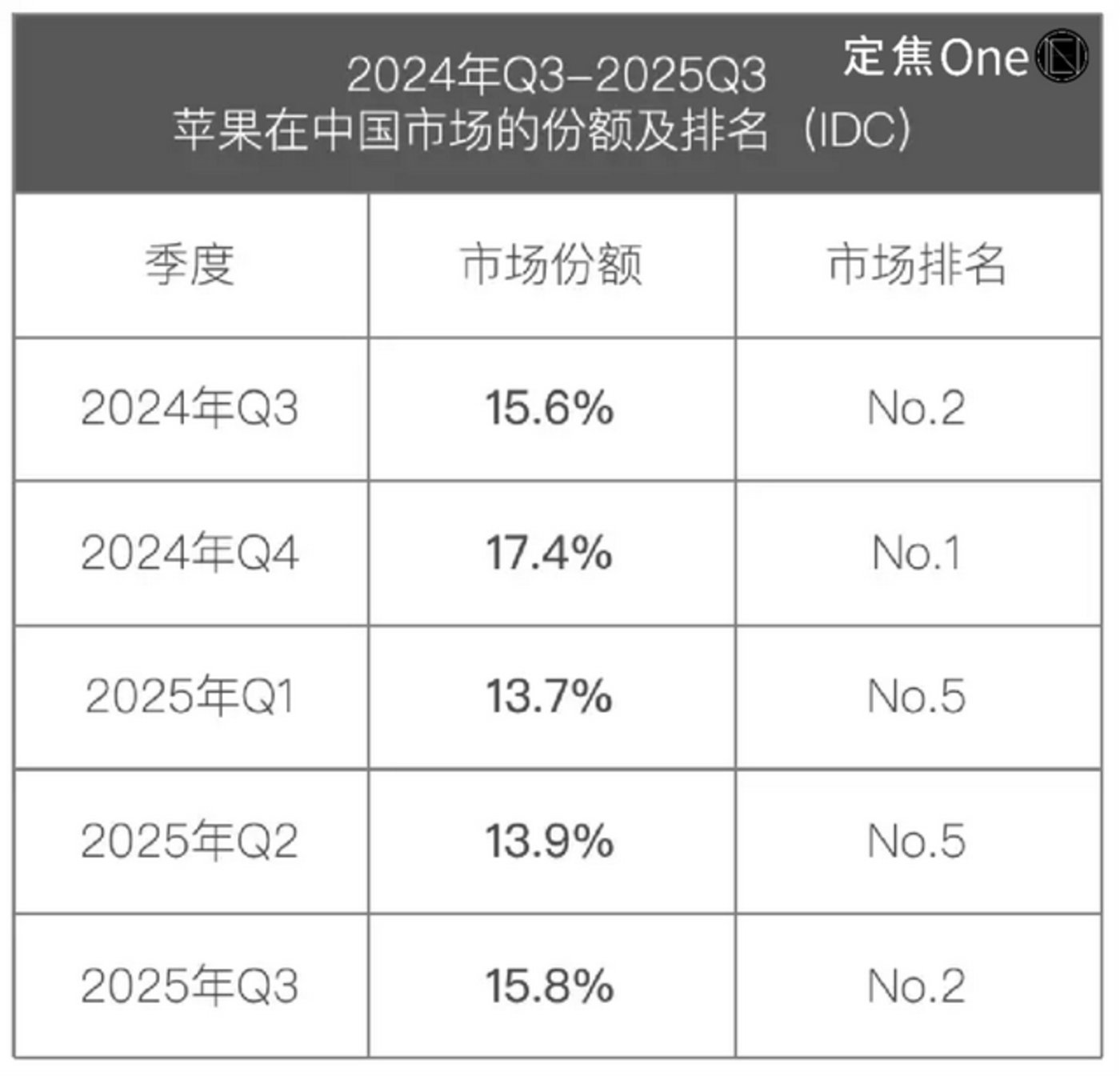 苹果守地盘靠的是新品——9 月 iPhone 17 系列的发布,加上策略调整,让它成为唯一环比和同比都实现增长的厂商。在排名上,苹果从第一季度的第五名,跃升至第三季度的第二或第三名。