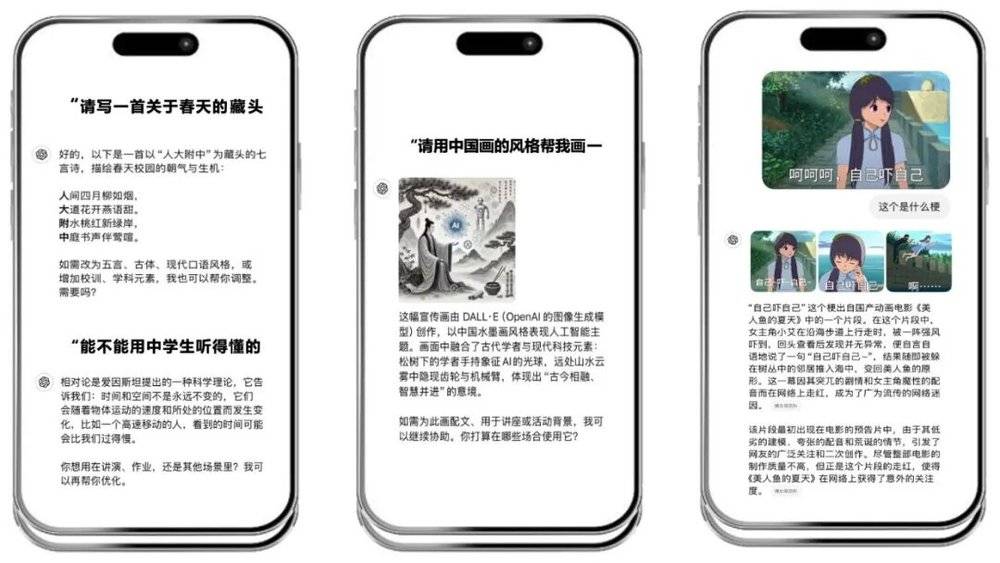 它还可以帮你画画。你说,请帮我用中国水墨画的风格,画一个人工智能的一个宣传图。大家用了可能觉得还不稀奇。