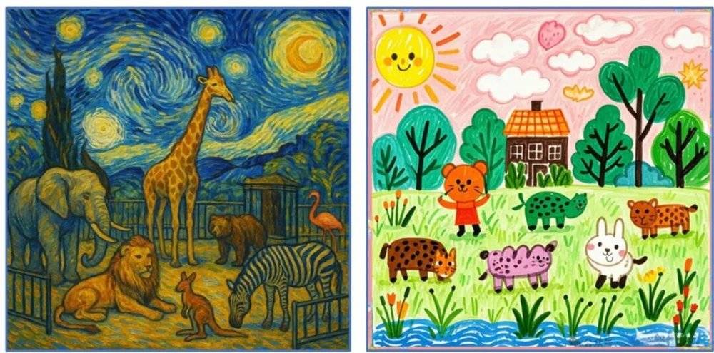大家可以看到,下面的两张图,都是以动物园为主题的两幅画,大家觉得哪一幅才是创新?