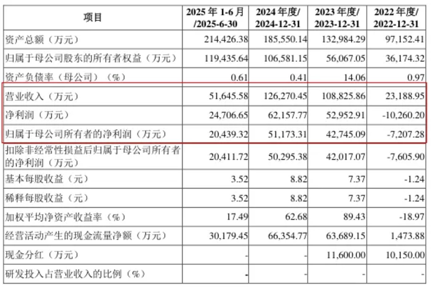 在 2022 年、2023 年、2024 年和 2025 年前 6 个月的营收分别为 442.62 万元、5809.37 万元、5370.42 万元及 1123.58 万元;占公司总营收的比例分别为 5.36%、9.65%、7.27% 和 3.64%。