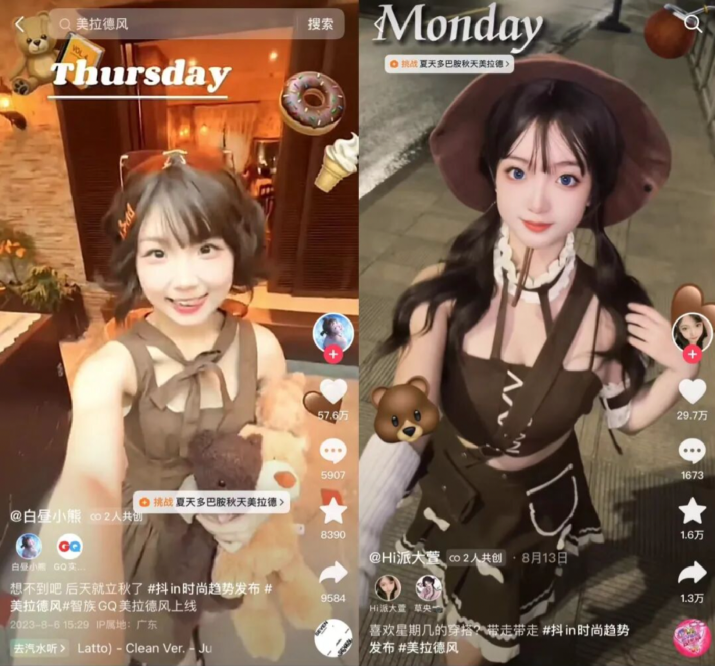 到了短视频时代,每个用户都可能成为趋势的发起者。一个普通用户的创意穿搭视频,可能因为算法的推荐而引爆全网,平台通过强大的算法机制筛选出用户喜闻乐见的内容,从而实现了时尚的 「反向」 传播。@白昼小熊 无论如何也不会想到,自己举着手机随手一拍的在校穿搭,竟然能成为一条播放破亿,引燃全网多巴胺穿搭风潮的视频 「火种」。
