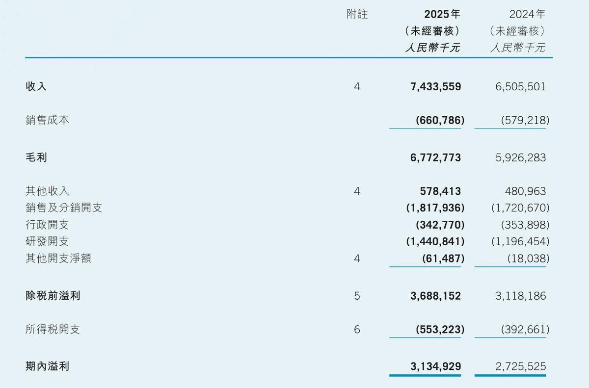 这类具有一定竞争力的上市创新药也成为公司业绩持续增长的核心动力。据财报,今年上半年,翰森制药收入约 74.34 亿元,同比增长约 14.3%;溢利约 31.35 亿元,同比增长约 15.0%;每股基本盈利约 0.53 元,同比增长约 14.8%。其中,创新药与合作产品销售收入约 61.45 亿元,同比增长 22.1%,占总收入比例上升至约 82.7%。