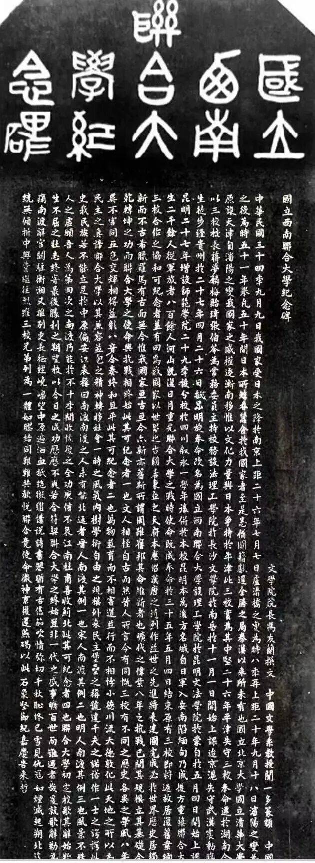 总之,以工学院为主,西南联大学生被大规模征调后出现在各个战场和各种工作场所,以他们的知识优势和满腔热血为抗战的胜利做出了应有的贡献。如今的云南师范大学校内巍然耸立着一块 「国立西南联合大学纪念碑」。碑的正面阴刻着:「联大先后毕业学生二千余人,从军旅者八百余人。」 碑的背面是 「国立西南联合大学抗战以来从军学生题名」,上列西南联大共计 832 位从军学生的名单。就像西南联大校歌里所唱到的那样,「千秋耻,终当雪。中兴业,须人杰」,这些学生,正是那个时代的人杰。