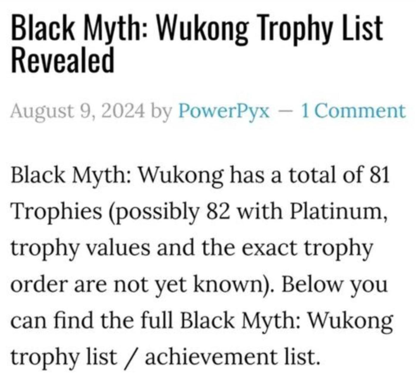 此前,一份长长的英文成就名单早已在外网流传,数量上与 《西游记》 故事里的 「九九八十一难」 相呼应。得到机翻之后,其中文版本又被搬运回本土社区,隐秘传播于 《黑神话:悟空》 爱好者的小圈子。
