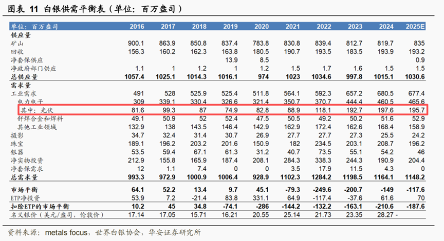 根据华安证券的研报显示,在光伏行业大爆发的 2021 年前,白银供需一直处于“ 紧平衡” 状态,但 2021 年后需求大幅超过供给.