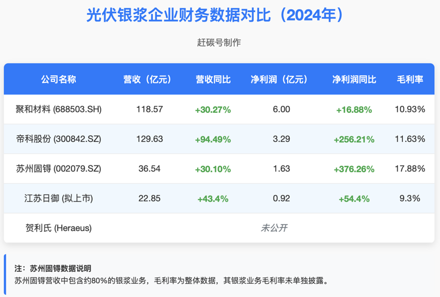 抛开理论推演,当前光伏银浆企业的实际经营处境尤为值得关注。数据显示,行业前五企业已占据 73% 市场份额,行业集中度较高。但除外资企业贺利氏外,国内公司毛利率普遍处于 9%–12% 区间,整体盈利承压。例如,苏州固锝虽整体毛利率为 17.88%,但其中包含高毛利半导体业务贡献,纯银浆业务盈利能力估计仍处平均水平。