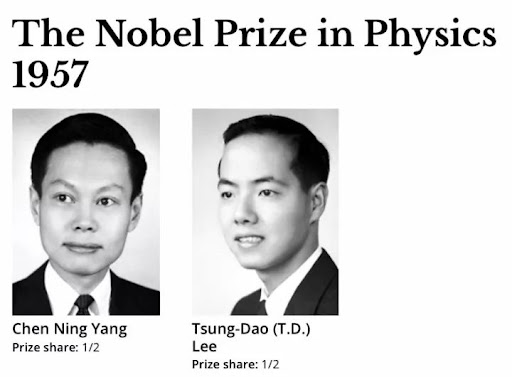 但在微观层面,一些粒子 (θ-τ粒子)的衰变,怎么算都跟 「宇称守恒」 对不上。当时几乎所有物理学家都觉得是实验搞错了,或者有啥未知粒子。但只有杨振宁和李政道这两个年轻人,提出了一个石破天惊的想法: