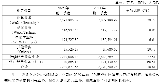 药明康德的三季报呈现出核心业务稳健、第二曲线翻倍增长的特征。