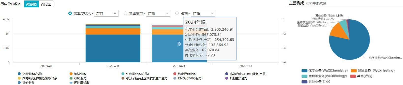 药明康德业务构成及营收占比情况