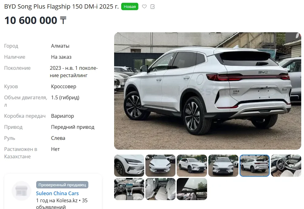 在哈萨克斯坦,一辆宋 PLUS DM-i 比亚迪官方卖 1778 万 (折合人民币 23.5 万元),而当地的零公里二手车只需要 1000 万 (折合人民币 14 万元)出头。这样的差价,买谁大伙都懂的。