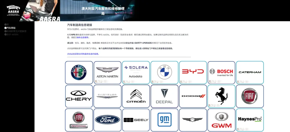 中国车企在澳大利亚汽车服务和维修管理局的网站上披露维修信息
