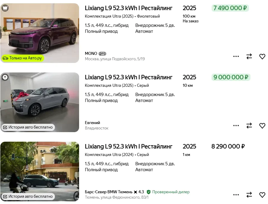 现在带改装的 2025 款理想 L9 仍要八九百万卢布
