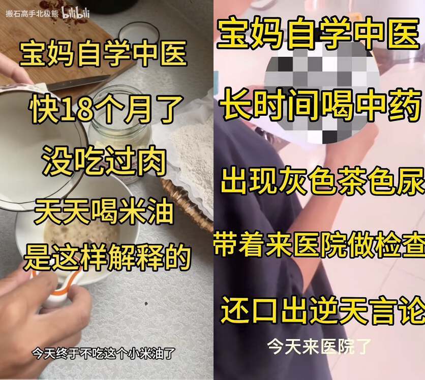 宝妈坚信,自己 18 个月的孩子身体里有湿气,吃母乳奶粉会上火,拒绝一切肉蛋奶和蛋白质,偶尔搭配一顿米油熬冬瓜给孩子祛湿,平时还喜欢买点昂贵的 「富氢水」 搭配服用。每日坚持手抄古方学习,实际上连人参的 「参」 字都写不对。