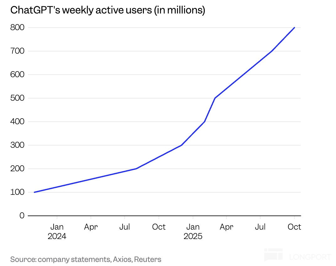 中游 CSP 想削掉上游 GPU 的高昂采购成本,上游 GPU 眼红中游 40% 的利润蛋糕。但若下游需求巨头选择捆绑其中一方,这一方的产业链溢价权自然上升。尤其是当面对拥有 8 亿周活用户的 OpenAI,无论是发展前景还是背后资源实力上,都会吸引芯片巨头锁死利益关系,“ 一起为梦想窒息!”。