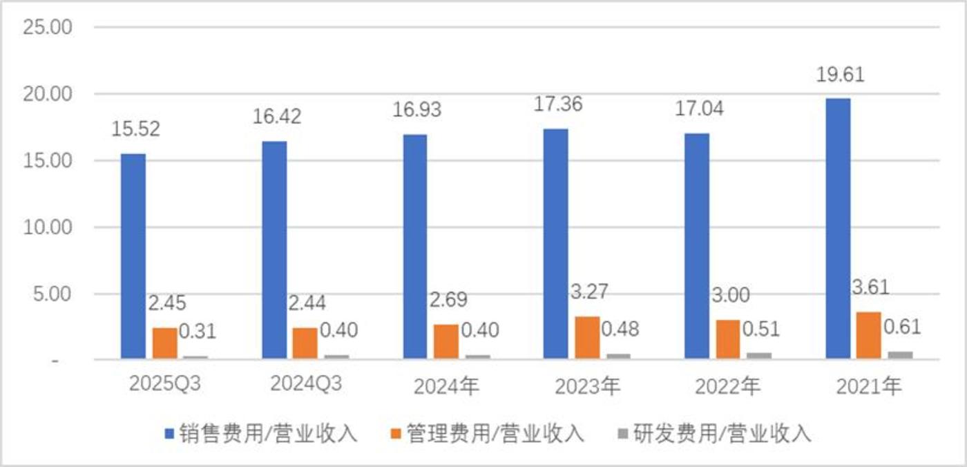 图:销售、管理、研发费率比;来源:企业财报,锦缎研究院