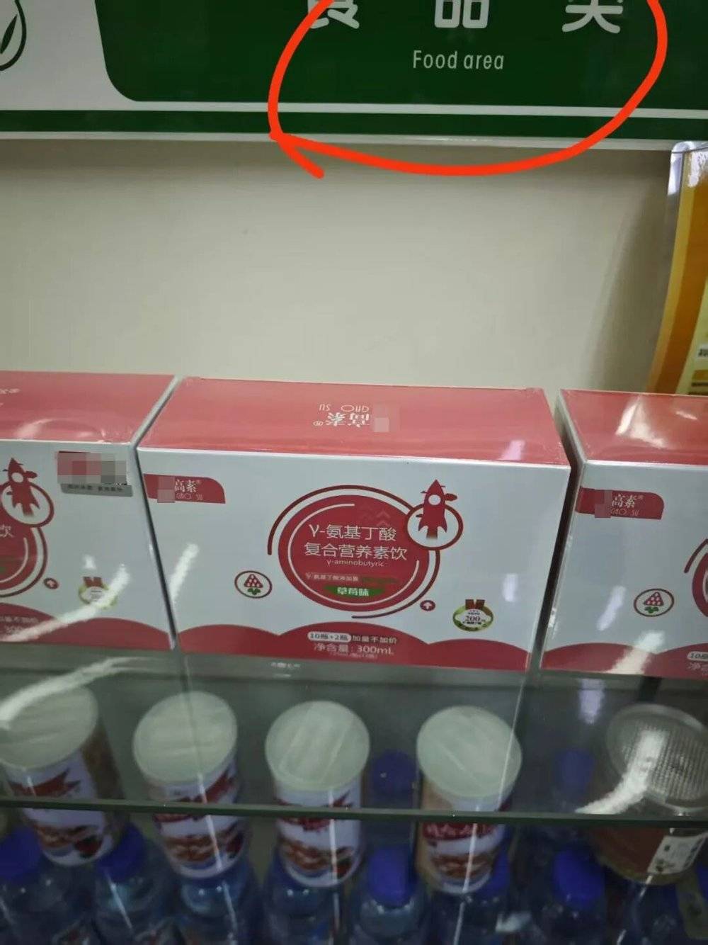 医院对面的药房里,某高素置于食品区的显眼位置 (受访者提供)