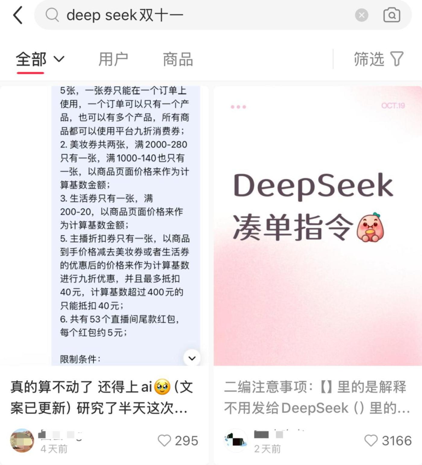 今年双 11,用 DeepSeek 给自己做完购物攻略后,洋葱 (化名) 的购物体验确实变得更便捷了。她尝试过很多版提示词,比如将自己的预算和粗略的购物计划直接抛给 DeepSeek,但发现 AI 最终给出的价格预测并不准确,且无法提供跨平台的详细价格对比。