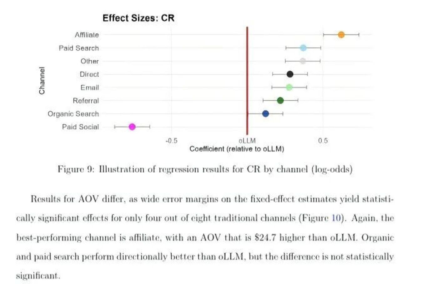 研究者找了 973 个电商网站的真实数据,检查了 50000 个 ChatGPT 推荐,对比了赚钱能力 (转化率、客单价等) 和用户活跃度 (跳出率、访问时长等) 两个维度,发现传统渠道的表现依旧优于 ChatGPT。