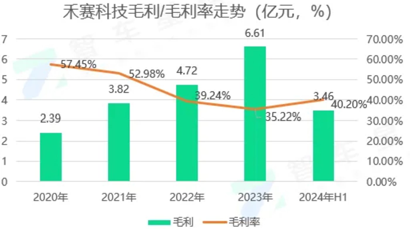 今年上半年,禾赛的整体毛利率为 40.2%,毛利约 3.46 亿元,同比增长 18.1%。