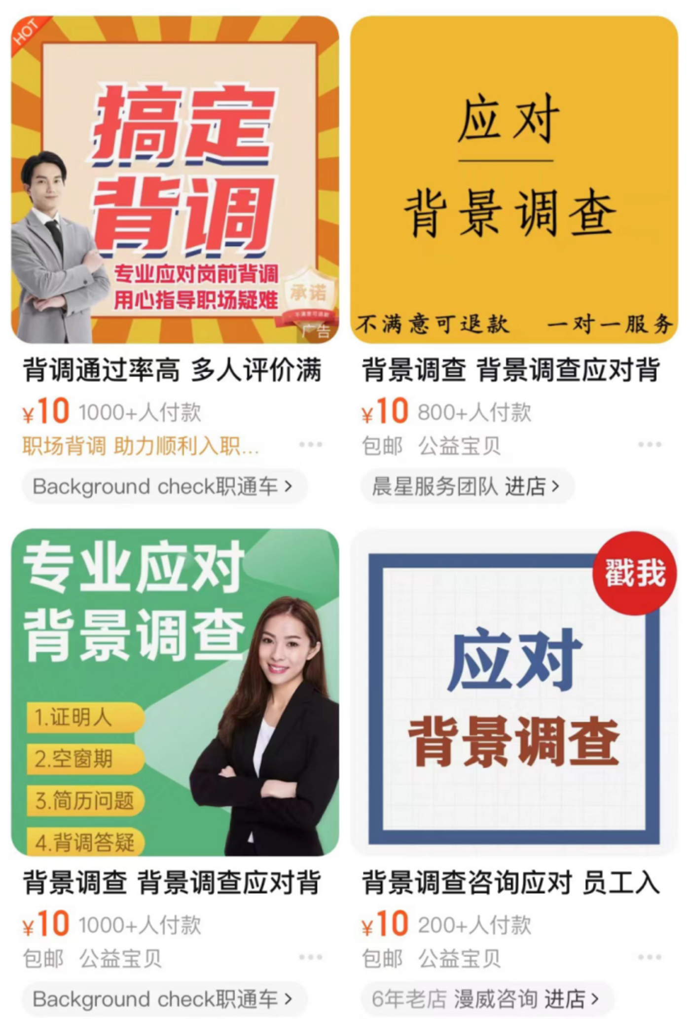 更为复杂的是,淘宝上出现了各种提供背景调查信息的服务。