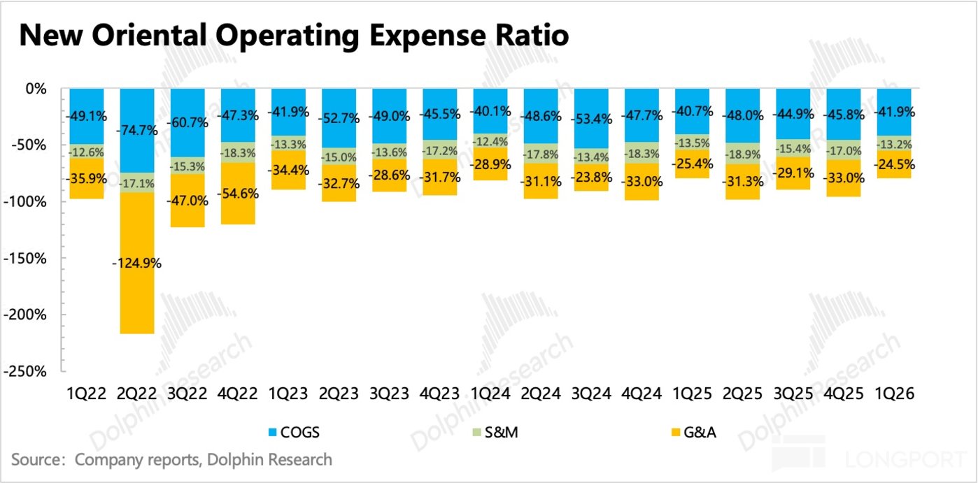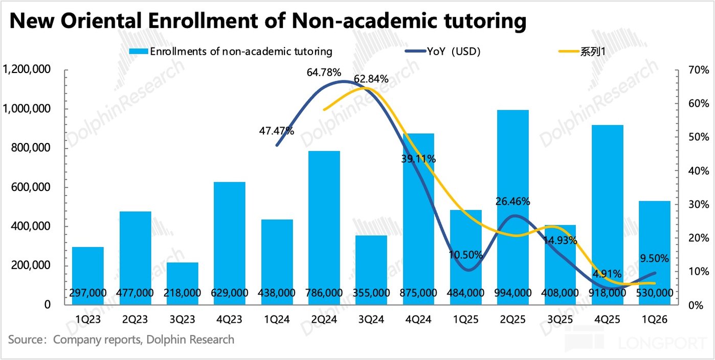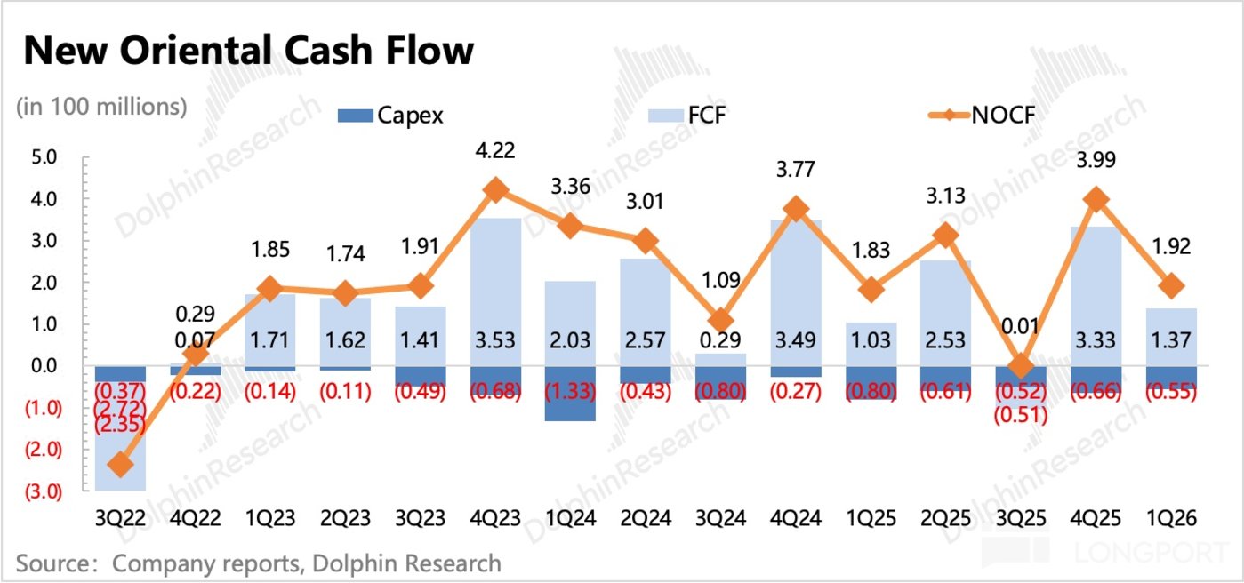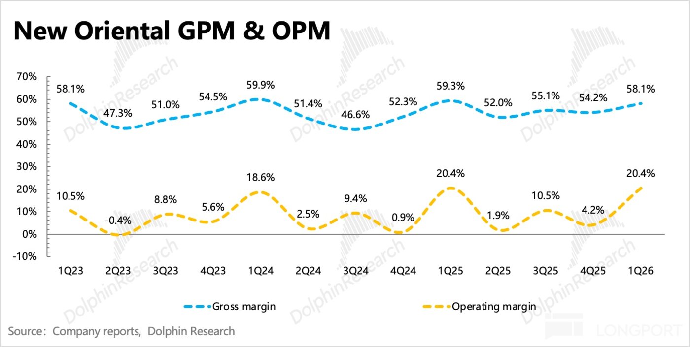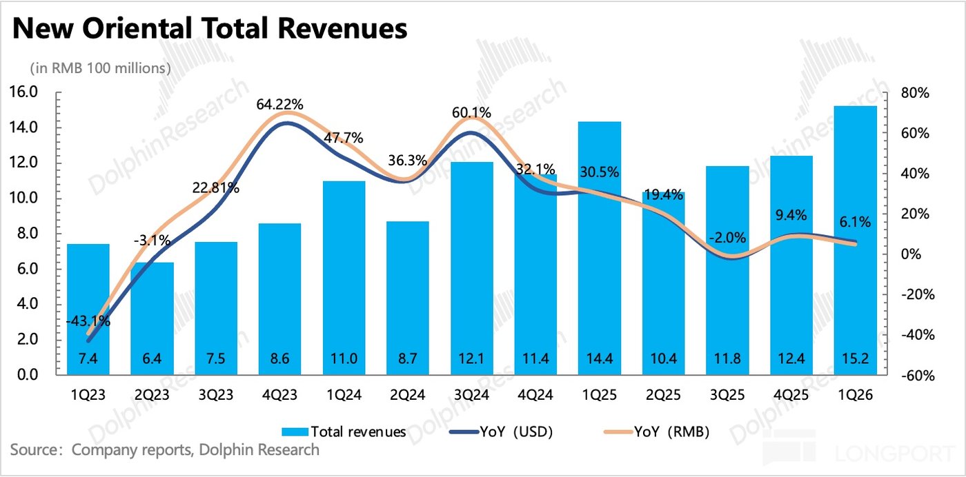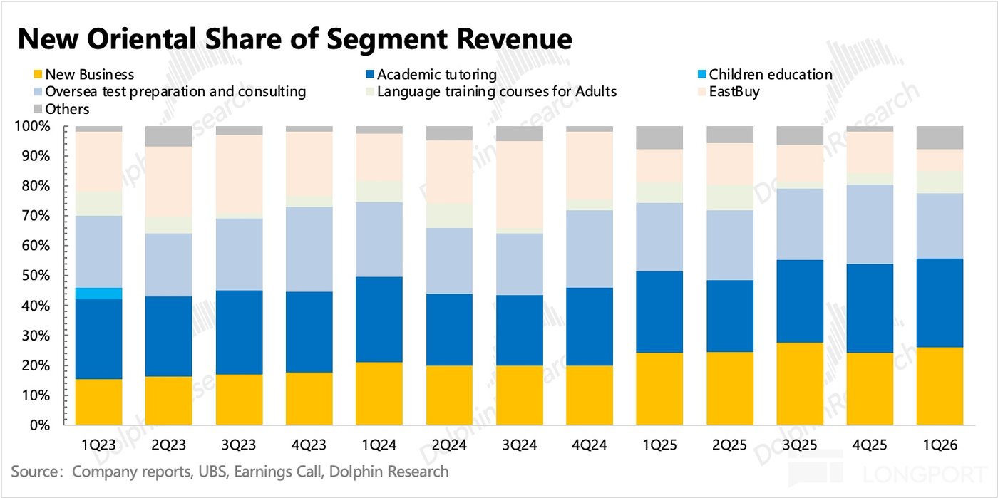 4、全年指引不变:目前 2026 财年收入指引仍是 5%~10% 的同比增长 (和上季度一样),只能打消留学业务不受控恶化的担忧。但从趋势上看,下半年在新业务的增速回暖下,管理层对留学业务的风险预留了更多的缓冲空间。