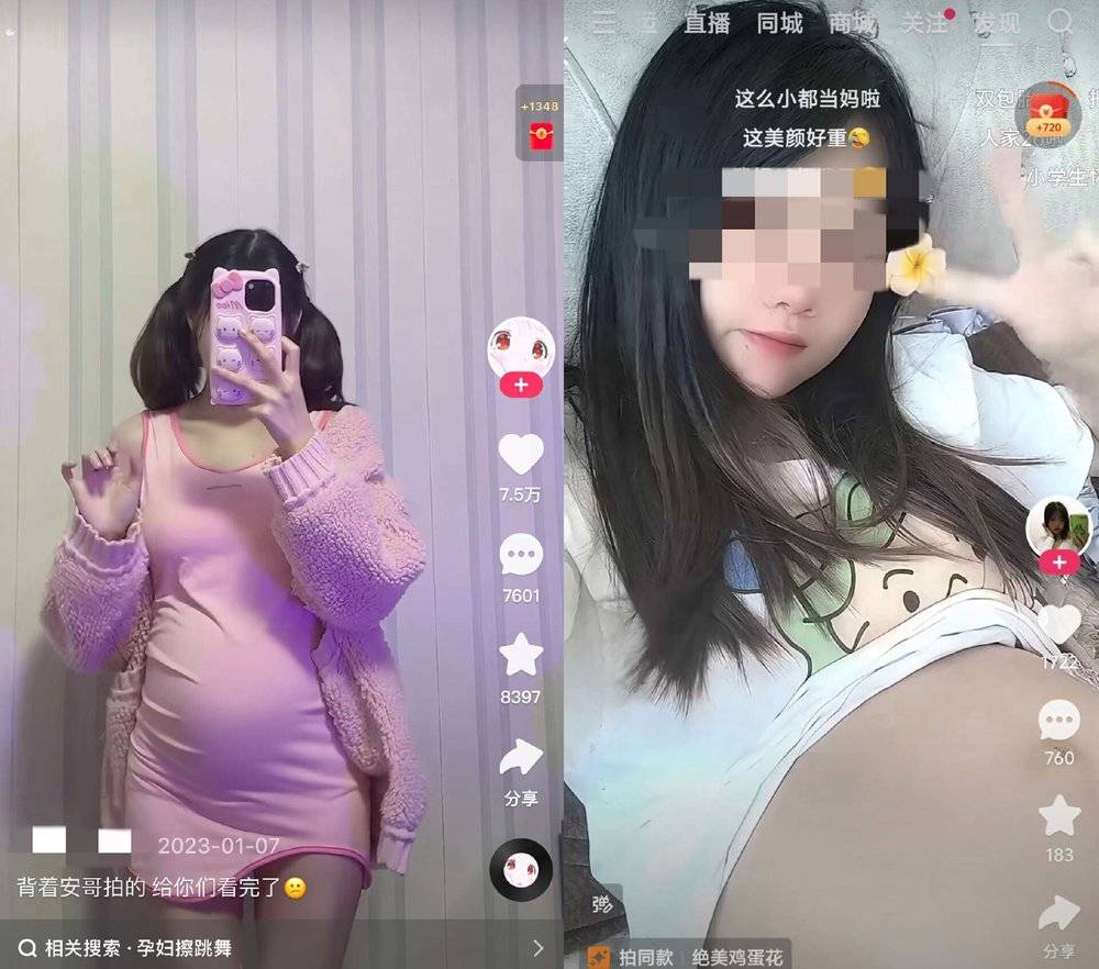 十多岁的女孩把身材 p 出不符合年龄的曲线,穿着成年人的裙子跳扭臀舞。二十岁多女孩解开 JK 短裙的拉链,挡在腰臀前面摆出性感姿势,配一句 「这才是 JK 的正确穿搭」。