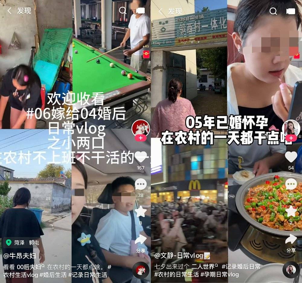 从 02 年到 09 年,各个年龄段的孕妇日常 vlog 变成最热的视频赛道,她们遍布河南、山东、安徽等不发达地区的农村和县城。视频里能看到同样未成年的丈夫,面容年轻的公婆。