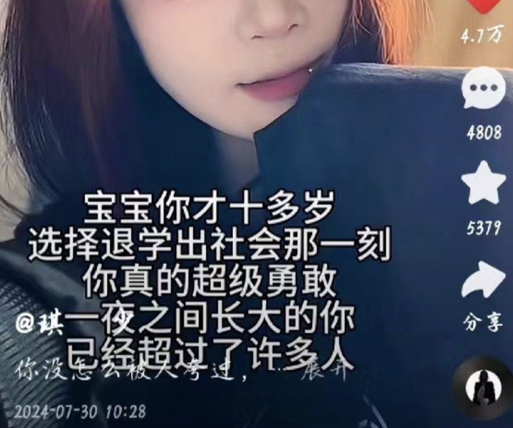 一句 「宝宝你才十多岁,选择退学出社会的那一刻真的超级勇敢」,让屏幕前的成年人都快不认识 「勇敢」 两个字了。