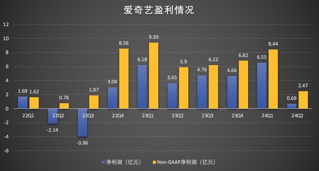 其中,爱奇艺运营利润同比下滑 44% 至 3.42 亿元,不按美国通用会计准则 (Non-GAAP),运营利润下滑 36% 至 5.01 亿元,2023 年同期则为增长 128%;净利润为 6870 万元,同比下滑 81%,Non-GAAP 净利润同比下滑 58% 至 2.47 亿元。