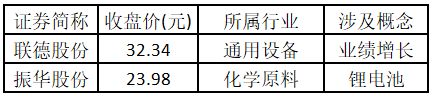 从概念特征来看,今日涨停板个股中,业绩增长、锂电池、福建自贸/海西概念的个股最多。
