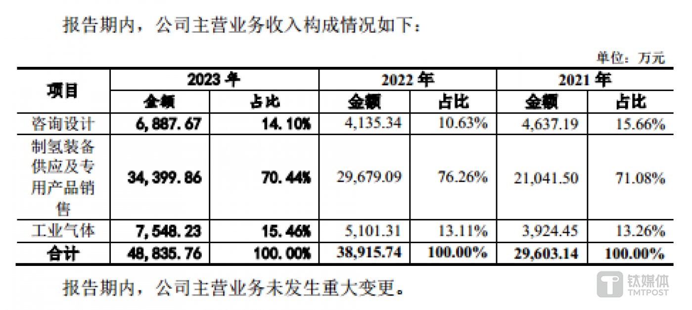 从业务上看,汉兴能源主要拥有咨询涉及、制氢装备供应及专用产品销售、工业气体,具体情况如下: