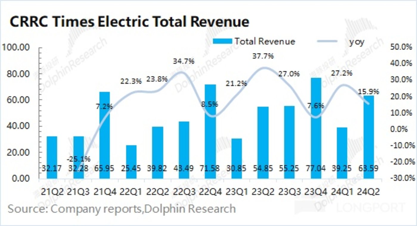 分季度看,时代电气在二季度实现营收 63.59 亿元,同比增长 15.9%。相比于上季度,公司营收端有大幅的提升。
