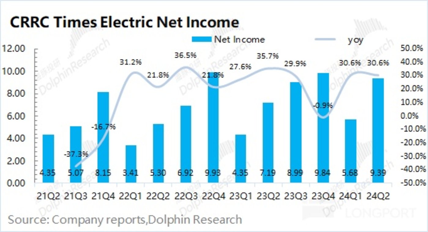 2024 年上半年时代电气的新兴装备业务实现收入 40.94 亿元,同比增长 9.2%,增速明显回落。