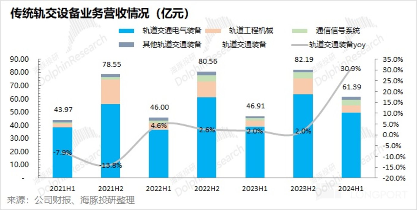 1) 传统轨交业务:时代电气 2024 年上半年传统轨交设备业务实现营收 61.39 亿元,同比增长 30.9%。传统轨交再提速,是公司本次业绩增长的主要来源;