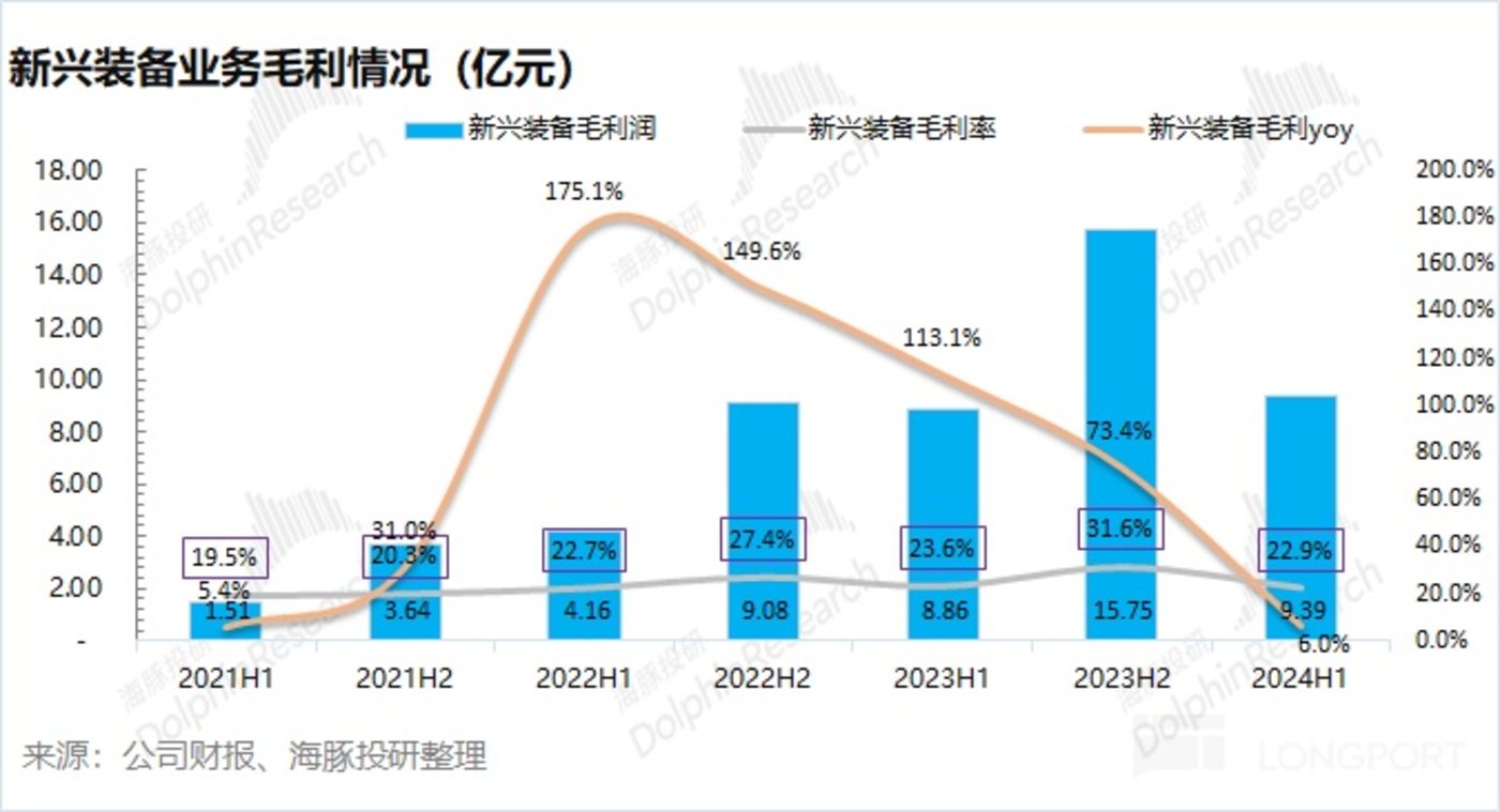 2024 年上半年公司新兴装备业务实现毛利 9.39 亿元,同比增长 6%。其中上半年新兴装备业务毛利率为 22.9%,同比下滑 0.7pct。业务毛利率的下滑,同样也受报表调整的影响。