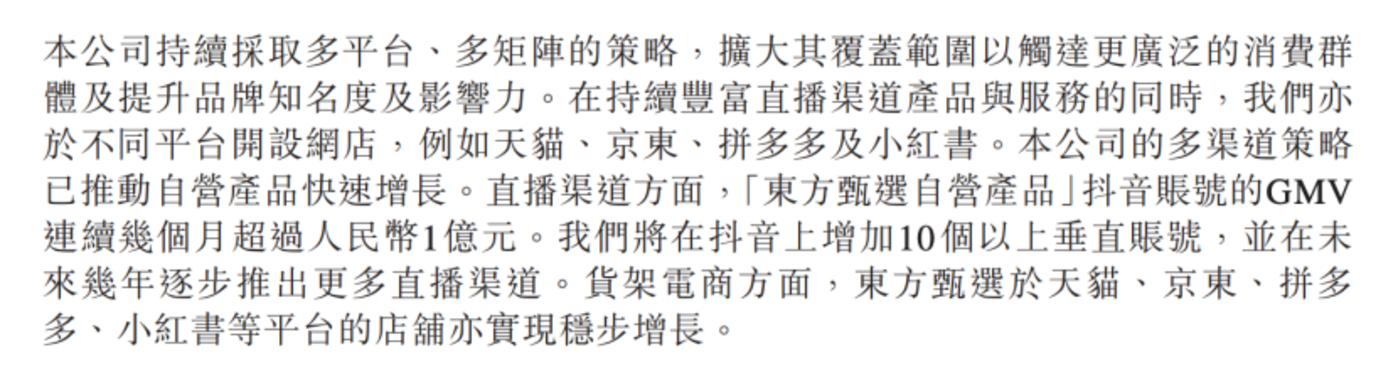 而这条流量的腿显然不局限于抖音,东方甄选财报中解释称,货架电商方面,东方甄选在天猫、京东、拼多多及小红书渠道实现了稳步增长,推动了自营产品的快速增长。