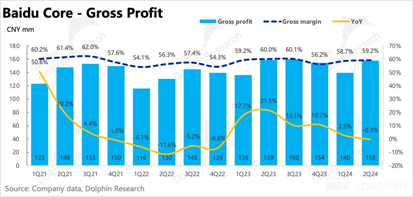 二季度百度核心广告同比下滑 2%,稍高于市场相对保守的预期。其中,高毛利率的托管页广告占比小幅反弹到 51%,环比 +1pct。