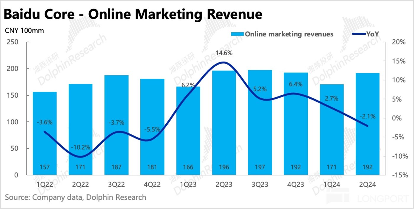 二季度虽然有 618 电商节,但消费相对疲软,尤其是对于线下中小商家来说,投放意愿下降明显。这对于刚好线下中小商家占比较高的百度来说,并不是好事。