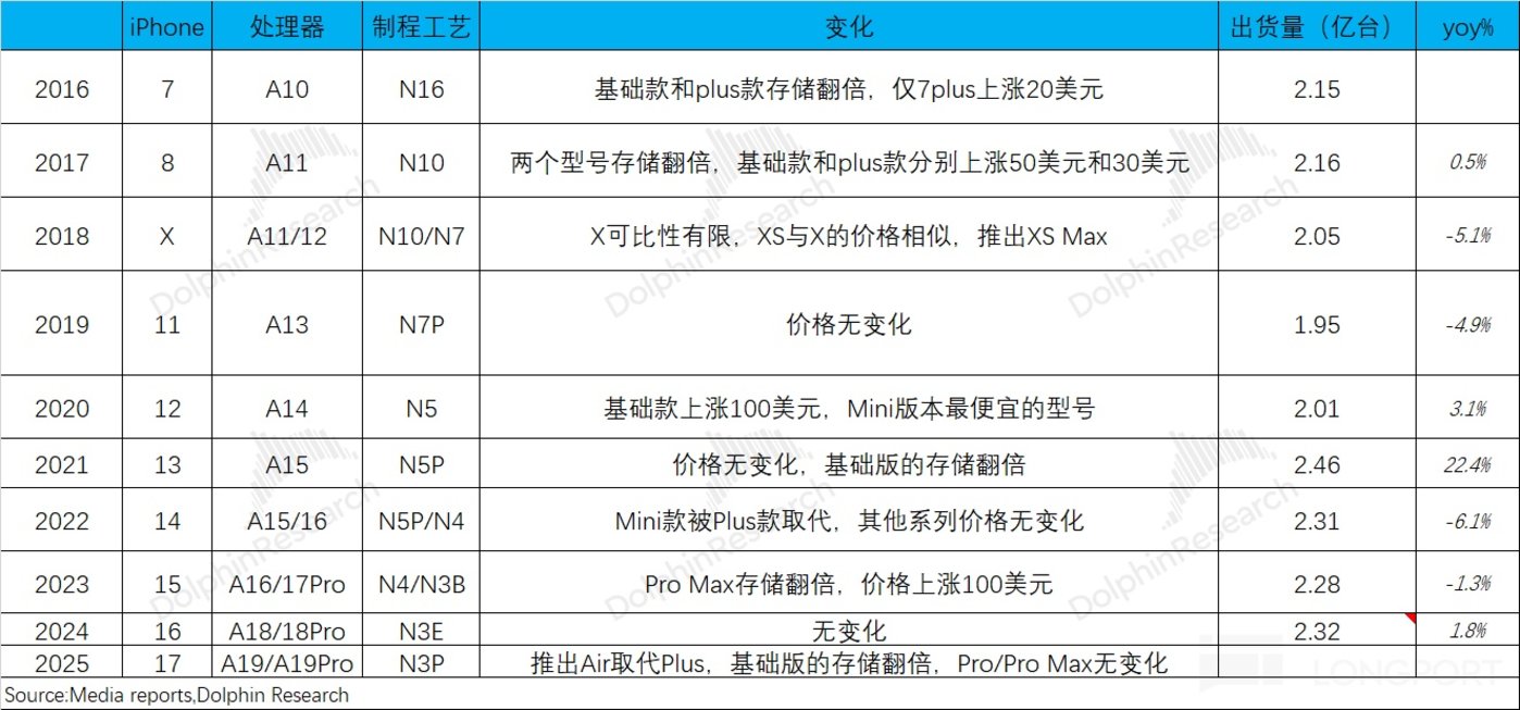 b) 秋季新品发布会:iPhone17 系列新品发布,主要的变化是 「推出 Air 取代 Plus,基础版的存储翻倍」。苹果公司依然维持着 「小修小改」 的操作,并没有带来 AI 方向的 「亮点」。