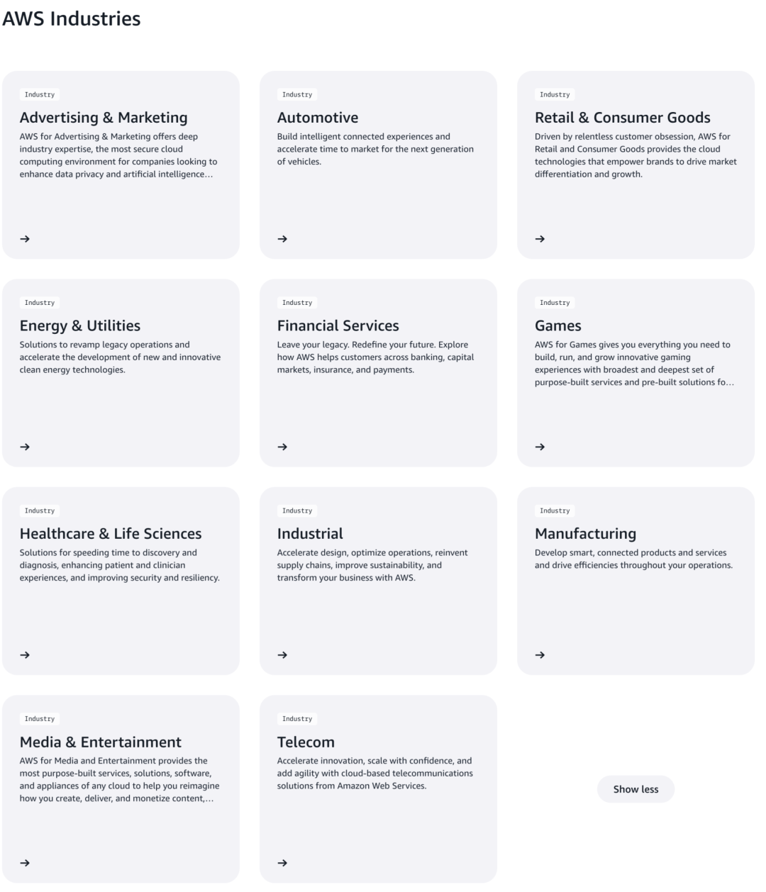 广告技术公司历来是 AWS 的大客户,正如在分析师会议中对广告业务的提及,在 AWS 的官网行业分类里,广告与营销业务是 11 大垂类行业之一。