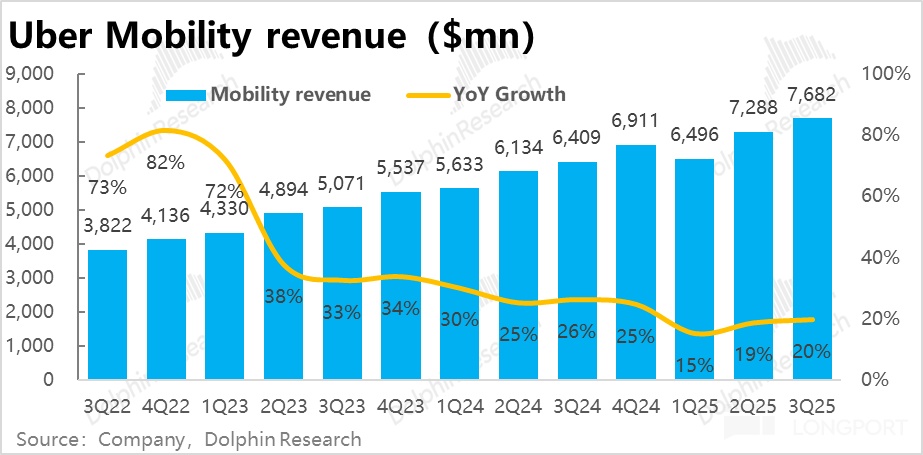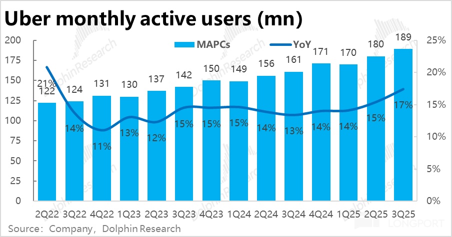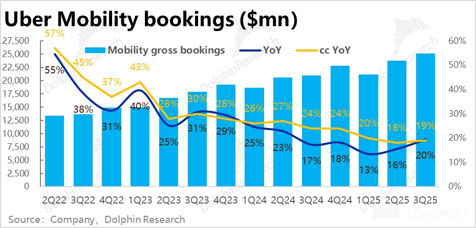本季网约车 (Mobility) 业务的订单额同比增长 20%,环比大幅提速 4pct。不过剔除汇率的影响后,实际增速仅环比提升了 1pct 了。即网约车增长确实不俗,不低的基数下继续提速,但没有咋看之下改善那么强劲。