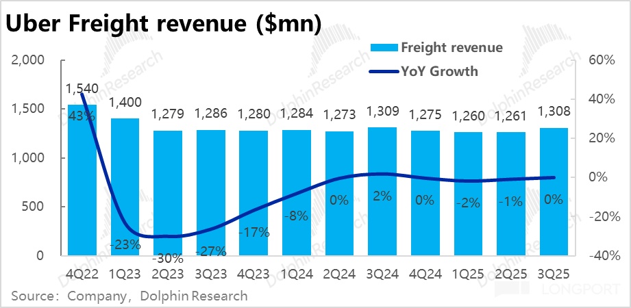 相比之下,外卖业务的变现率则在继续走高,在不低基数下仍同比提升约 60bps。带动配送业务的收入增速环比明显提速了 4pct 到 29%,在订单额增速的基础上进一步放大。虽然生鲜日杂相餐饮外卖的变现率是更高还是更低尚不明确,但体现出 Uber 在广告上的变现率在继续走高。