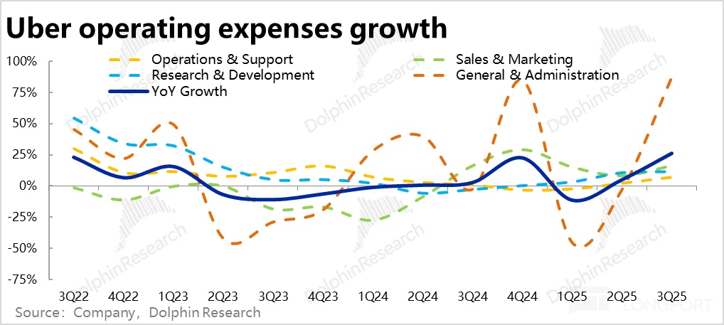 而在业务增速加速的同时,本季的费用支出也显著再提速。本季度合计总费用支出同比大增 26%,其中主要是管理费用因本季有确认约 4.7 亿的一次性法律支出同比大增 88%。但即便剔除该一次性影响,费用增速仍有 12%。相比 23 年以来长期增速不超过 10% 乃至为负的费用增长,已有明显扩展的趋势。