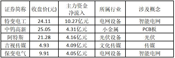 从主力资金来看,今日涨停板个股中,主力资金净流入金额排名前 5 的个股分别为特变电工、中钨高新、阿特斯、吉视传媒、保变电气。欢迎大家关注微信公众号 「道达号」,其 「道达涨停复盘」 栏目为大家解读。