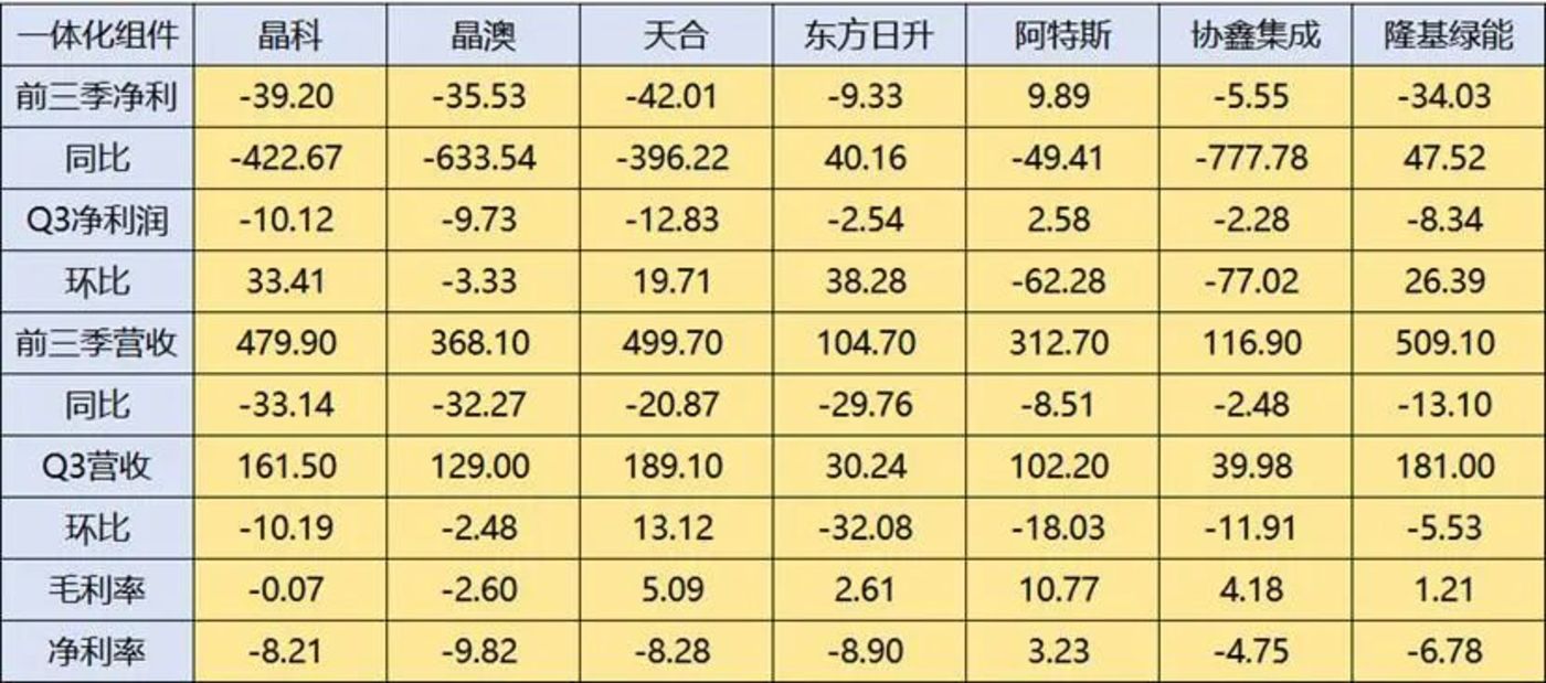 隆基减亏也比较明显,如果去除隆基绿能计提大量资产减值,三季度可能实现接近盈亏平衡。TCL 中环的亏损也环比有所好转。