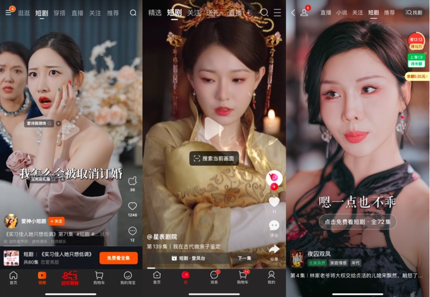 淘宝、京东、拼多多三大电商平台的短剧频道