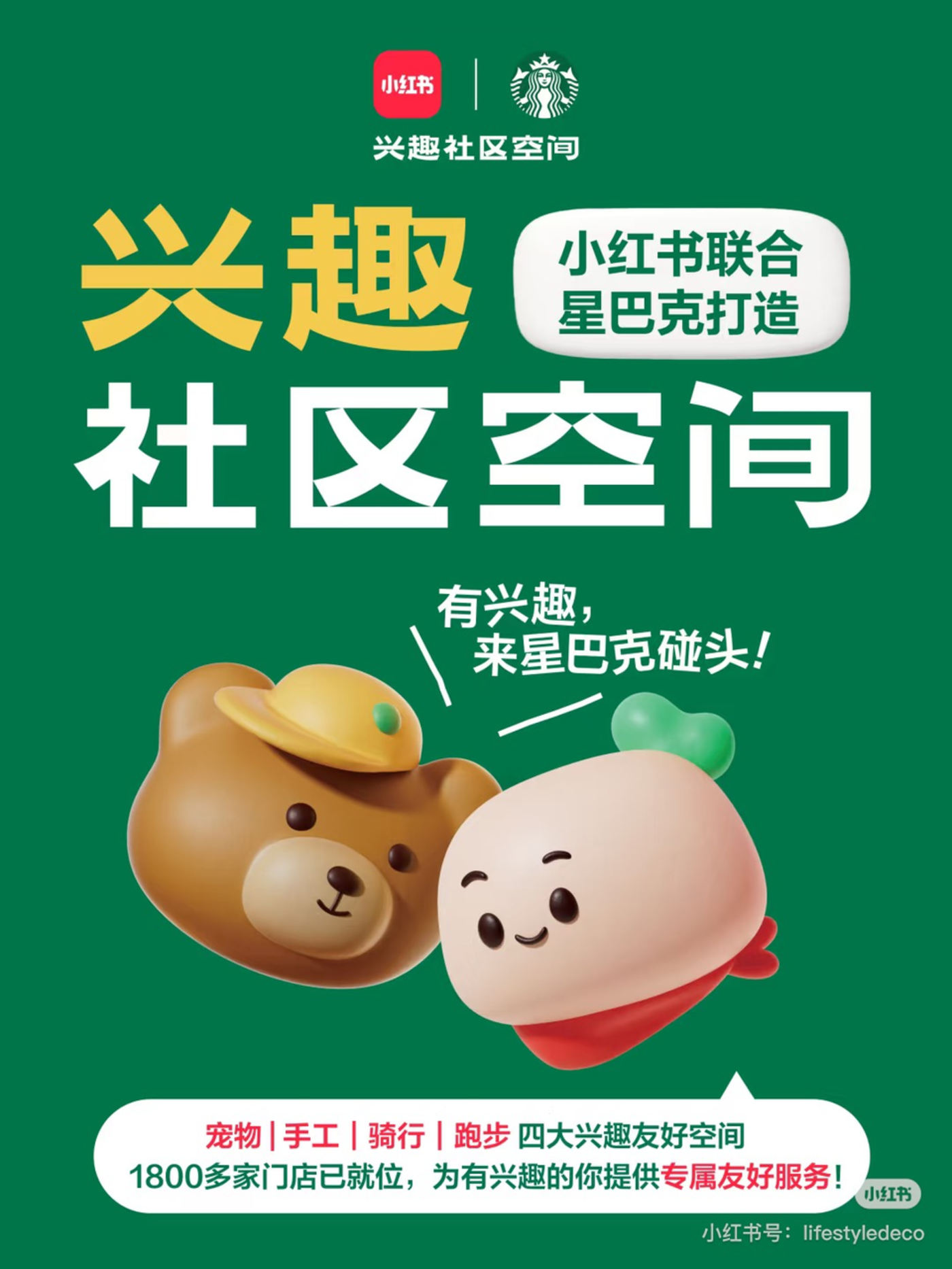 星巴克不会脱离购物中心,但可以在中国市场可以尝试寻找新的空间氛围定位。一个信号是,星巴克中国在携手小红书 APP,将全国 1800 余家门店升级为宠物、手工、骑行、跑步四大主题的 「兴趣社区空间」,通过服务兴趣社群,来强化社交、社区连接点的定位。